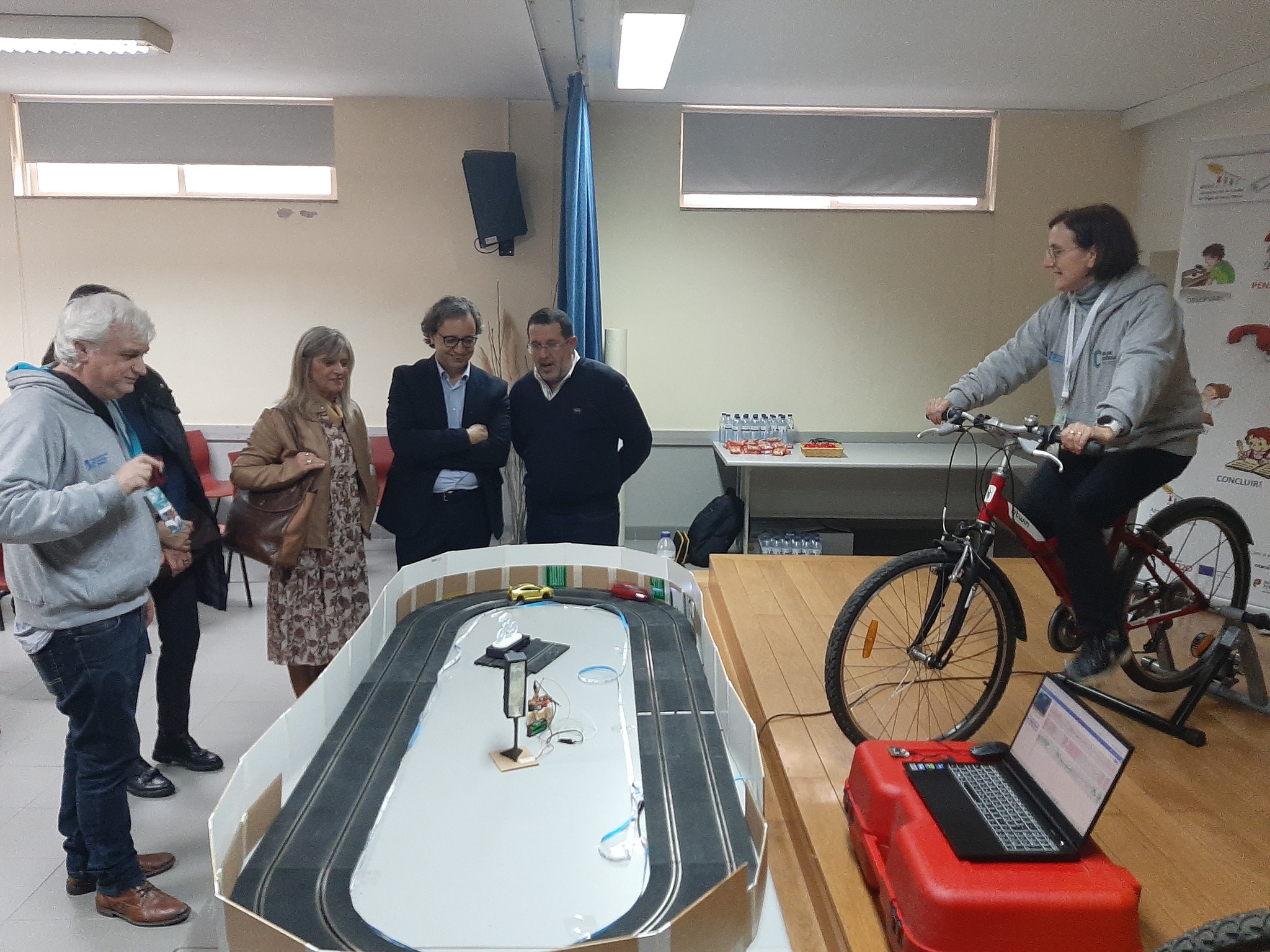 Em articulação com o AE de Trigal de Santa Maria, a nossa escola apresentou a aplicação do kit desenvolvido pelos nossos alunos, E-SUBIKE, bem como os carrinhos da pista de SLOT Car, movidos pela energia gerada pelas bicicletas.