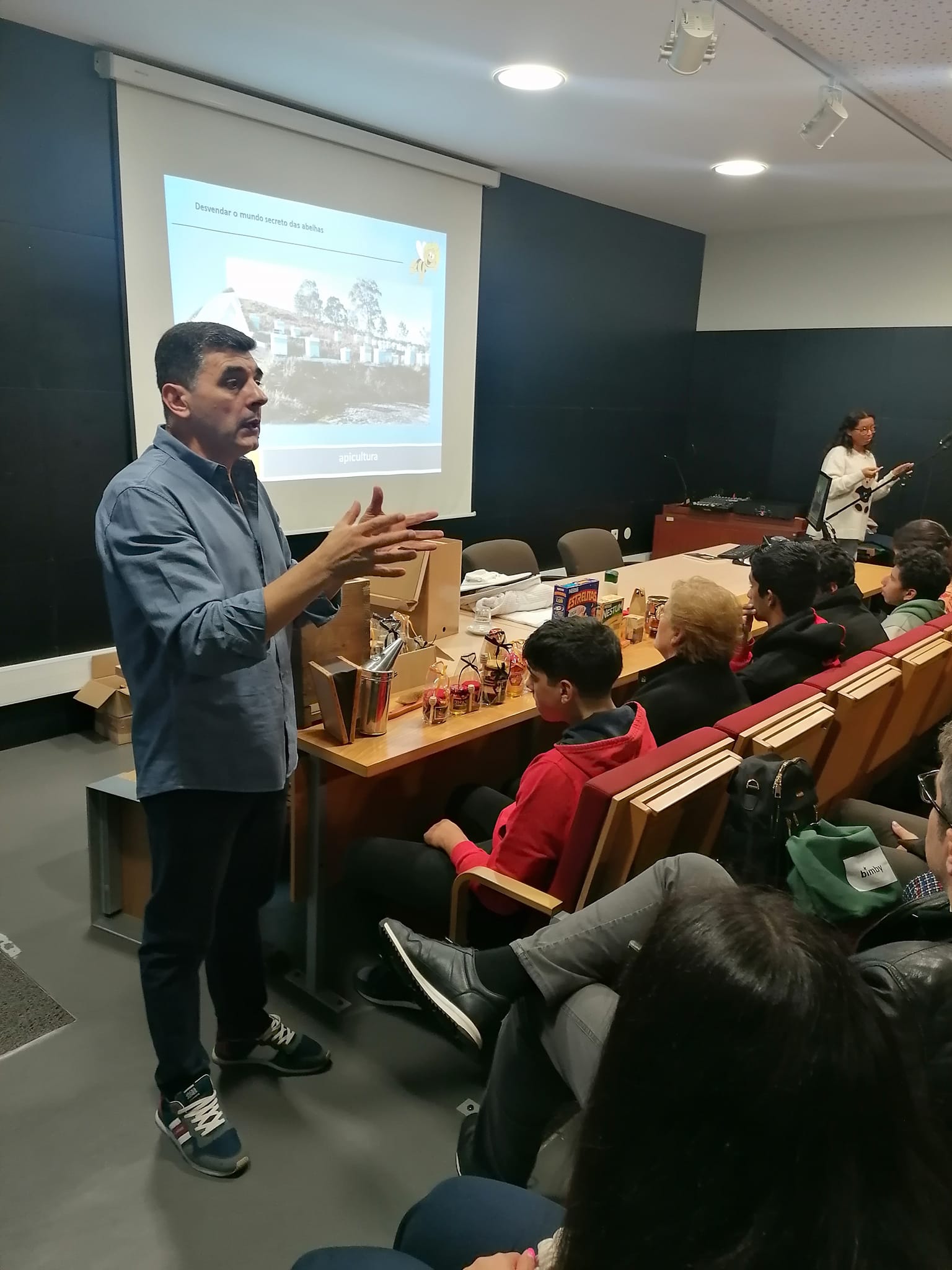 No âmbito da Semana da Ciência e da Tecnologia, os alunos das turmas: 9C,10C,10D,10E,3TIS,11TGPSI,14TAS,16TSJ e CAA participaram, no dia 18 de novembro na sessão "As abelhas e a Sustentabilidade" dinamizada pelo professor e produtor de mel José Sousa.