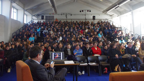 O Polivalente da Escola Secundária D. Maria II estava lotado, acolhendo os alunos de ciências e tecnologias do 10º e 11º ano. A aula aberta, com o Professor Doutor Mariano Gago, ia começar um pouco atrasada, mas prometia.