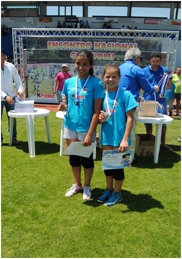 Estas “pequenas grandes” atletas do 7º6, da Escola E.B. 2,3 de Lamaçães, depois de terem sido campeãs regionais do Distrito de Braga, conseguiram o grande feito de se tornarem campeãs nacionais de Gira Volei(11/13 ANOS), no Encontro Nacional realizado nos dias 14 e 15 de Junho, no Estádio Municipal do Castelo da Maia. Nestes dois dias de competição estas meninas ganharam todos os jogos com habilidade, espírito de sacrifício(31ºde temperatura, ao ar livre) e principalmente muito fair-play. São pois um exemplo a seguir e estão de PARABÉNS!!!