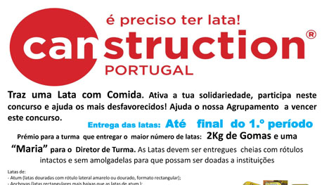 As latas poderão ser entregues até final do 1º período, junto do diretor de turma, em saco próprio e identificado. Haverá prémios para a turma que entregar o maior número de latas. As latas devem ser entregues cheias com rótulos intactos e sem amolgadelas para que possam ser doadas a instituições de solidariedade social.