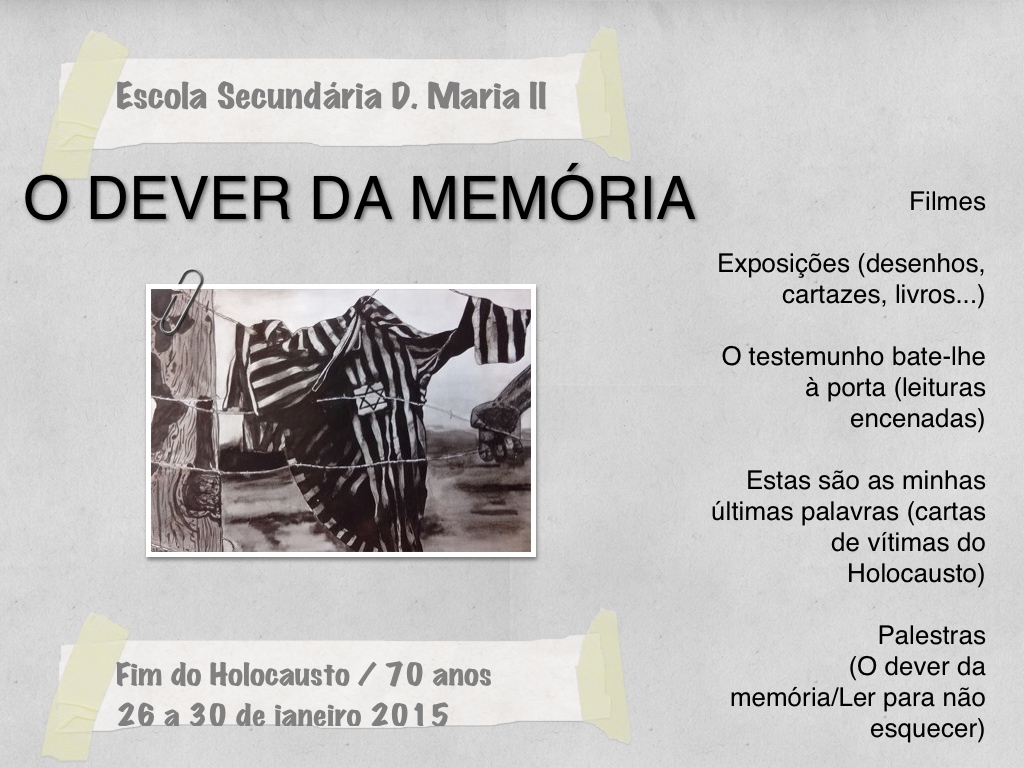 “O dever da memória” é o título dado às comemorações realizadas na Escola Secundária D. Maria II para celebrar o fim do Holocausto.